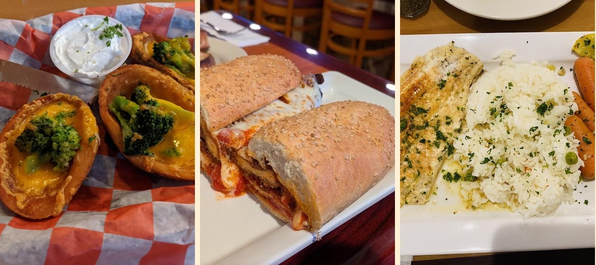 You must try the shrimp scampi over pasta and BBQ ribs with French fries. Don't miss the garlic knots either, they are a crowd favorite.